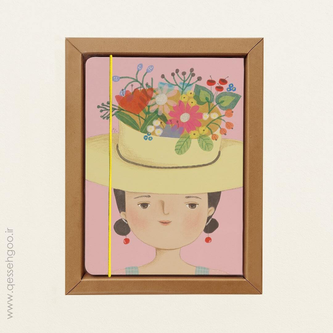 تصویرسازی جذاب دختر و کلاه پر از گل روی جلد این دفتر، اون رو برای
